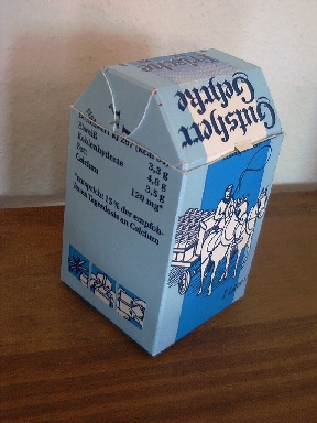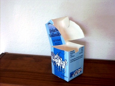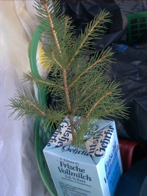 Der Verschluss dieser Box wird nur geritzt und nach innen gefaltet. Die Box eignet sich ausgezeichnet zum Sammeln eines Sortiments von Schrauben, Nägeln und anderen Metallteilen in der Werkstatt. Sie kann auf den Kopf gestellt werden, ohne dass etwas heraus fällt. Die Kleinteile können wie in eine Spardose hineingeworfen werden. Hier dient eine solche Box als Transport- und Pflanzbehälter für eine im Walde ausgegrabene junge Fichte - als Mitbringsel aus dem Urlaub. |